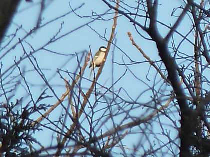 おはようございます。よく晴れて,ひんやりとした空気が心地よく感じます。日の出が早くなり,通勤途上の薄暗さはなくなりました。春の気配とともに,鳥の姿も多くみられるようになってきました。今日の野鳥は,「シジュウカラ」です。最近のデジタルカメラは,コンパクトなのにしっかり望遠がきいています。遠くてぼんやりしていますが,30メートル以上離れているのです。