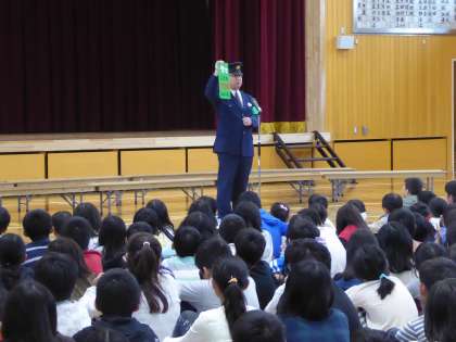 体育館に避難した後は,校長先生や警察の方から自分の身を守ることについてお話をしていただきました。