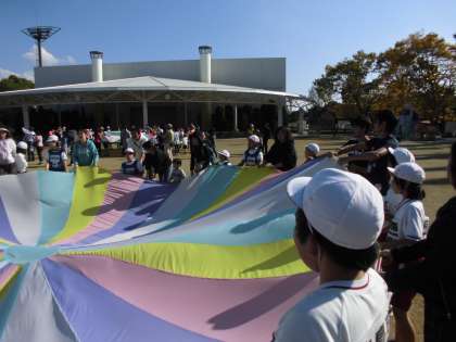 8日(木)、すばらしい秋空の下、淀みどりの広場にて、伏見西支部育成学級合同運動会が行われました。