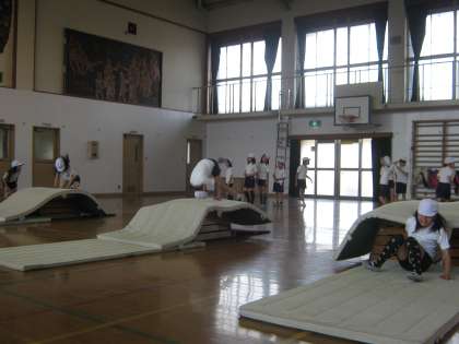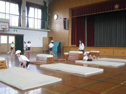 初めは怖がっていた子どもたちも,いろいろな場を設定し,台上前転に挑戦しました!!!ほぼ全員が跳び箱の上にマットを置いた状態での台上前転ができるようになってきました!!!