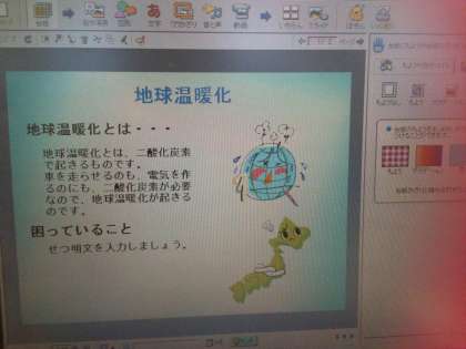 1年間,パソコンを使って調べ学習をすすめてきましたが,最後の集大成ということでパソコンを使ってプレゼンを作っています。初めてのプレゼン作成に悪戦苦闘しながらも,立派なものを作っています。
