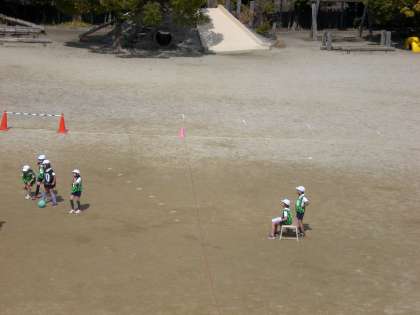 ラインひきや得点版・ポートボール台・記録・ストップウォッチ等,子どもたちがすべて準備をし,試合を進めることができました。4月に比べてずいぶん成長しました。
