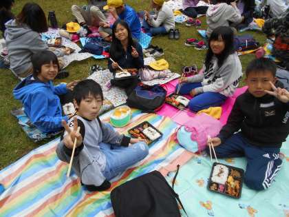 ゴールの親水広場では,班の友だちとお弁当を食べました。