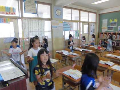 「はしの上で」という曲では,曲に合わせて手拍子を取りながら2拍子のはくを感じ取りました!自分で手拍子をしたり,隣の友だちと手拍子をしたり,グループみんなで手拍子をしたりとみんなとても楽しみながら2拍子を感じ取ることができました!