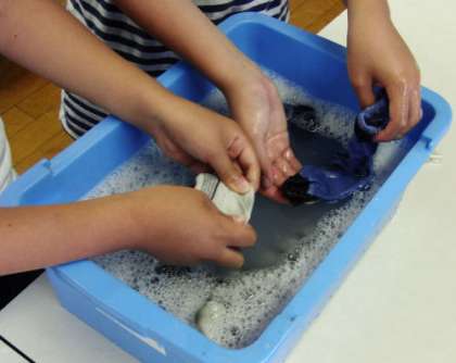 の手洗い洗濯の全過程を実習しました。