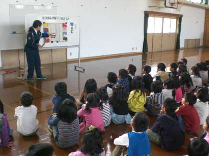 子どもたちからは,「知ってるよ!」などの声が上がり,ほとんど知っている子もいたようですが,しっかり安全についてもう一度確認して,安全に気をつけて帰ってほしいです。家庭の方でも,今日のことを話していただけるとありがたいです。