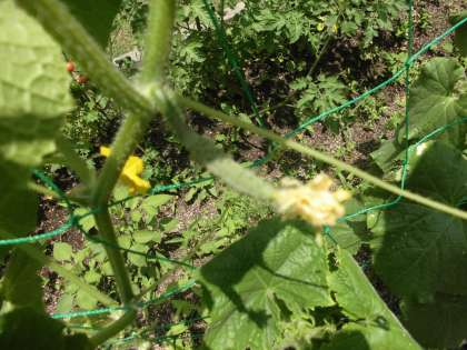 きゅうりの実ができ始め,「きゅうりできてる!」と大喜び。