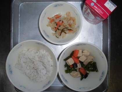 7月1日の献立は,「麦ごはん・牛乳・高野どうふと野菜のたき合わせ・ごま酢煮」でした。