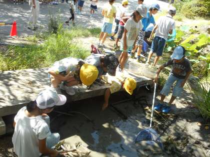メダカやドジョウやヤゴやカエルなどを発見すると歓声が上がり,なかにはメダカの卵を発見をする子どももいました。