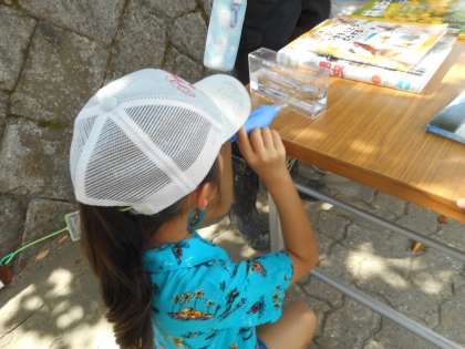 地上の昆虫を虫眼鏡や拡大スコープで観察したり,池の生き物を網ですくってシャーレや観察水槽に入れて名前を調べたりと生き生きと活動していました。