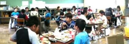 そのために,ず〜っと,そのままの隊形で給食を食べていました。