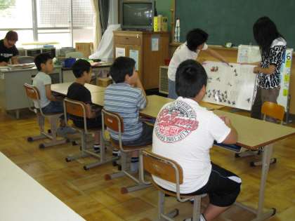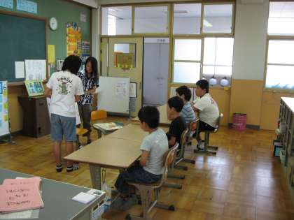 大型絵本での読み聞かせに聴き(見)入っている様子です。