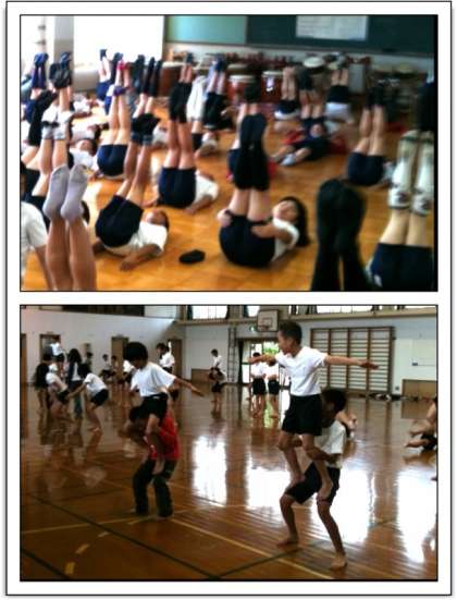 クラスの中で,誰と組んだらふたり技の完成度が高まるかを試行錯誤しながら練習しました。★ミ!