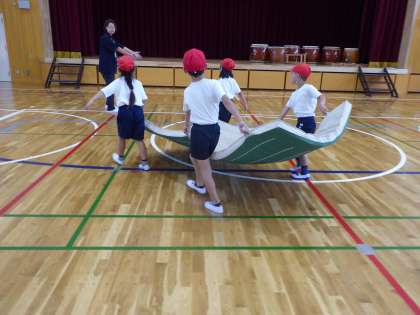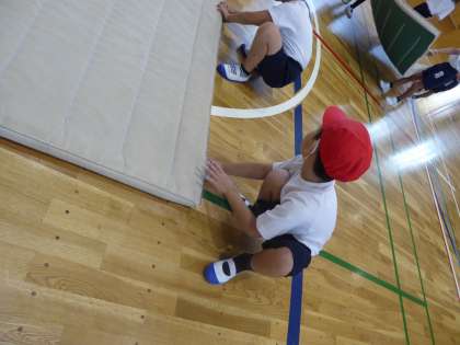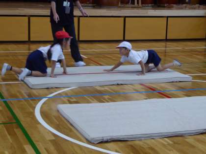 そして準備運動として,腕の力をかけて進む「ハイハイ競争」を行いました。