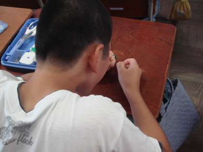 まずは糸に針を通す作業に悪戦苦闘!