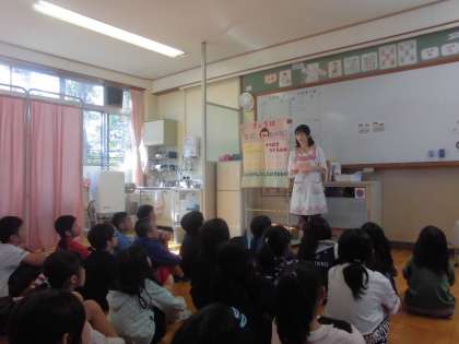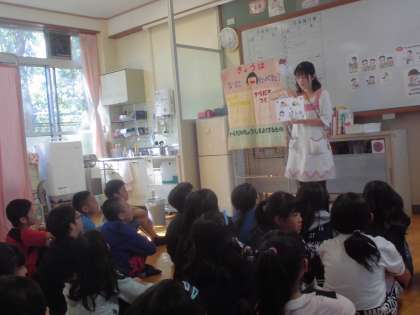 その前に川原崎先生から,目の健康のために自分ができることを教えていただきました。「グー」「チョキ」「パー」を使った正しい姿勢を学び,教室に戻った子どもたちは早速自分の姿勢をふりかえっていました。