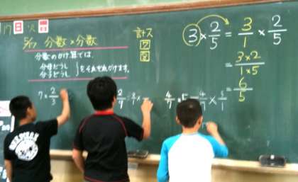 先日の休日参観では,面積図を使って,分数×分数の答えを求めました。