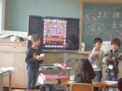 取組の最後には,自分たちが見つけたエネルギーを発表しましたが,子ども達の発想は豊かで,大いに盛り上がった発表会になりました。