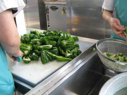 ピーマンは,みんなの大好きな『焼き肉』に,トマトは,『トマトと卵のスープ』に使いました。どちらの野菜も彩りがとてもきれいです。目でも食を楽しむことが出来ます。ピーマンの苦手な子も多いのですが,大好きなお肉と一緒にがんばって食べていました。