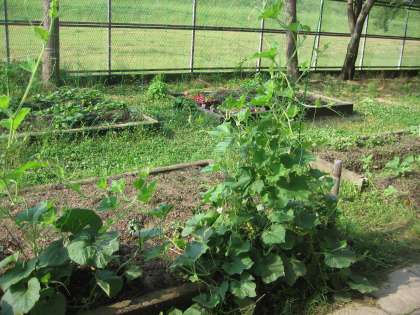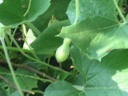 緑のカーテンには,日に日につるが伸びています。校長室の前では,ヒョウタンがそれらしい形になってきました。