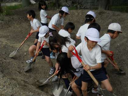 終わってからある子たちが「こしがいたい〜」と苦痛を訴えていましたが,表情は晴れやかで,土木作業の大変さと,そのあとの達成感を感じることができたようです。