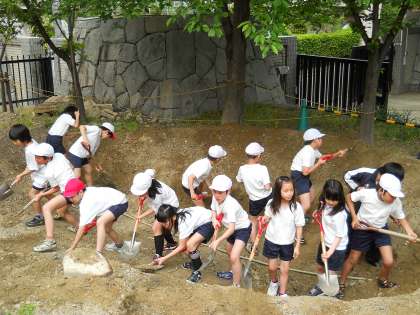 交代で大きなスコップを使い,一生懸命に土を掘っている姿は男の子も女の子もたくましかったです☆