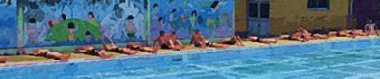 ★体を清潔にした後は,ストレッチングをして,入水にそなえての体の準備をします。ゆ〜っくり筋肉を伸ばします。筋肉が伸びているの意識しながらしっかり準備運動をします。