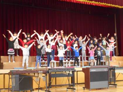 音楽発表会,当日の子どもたちは「ドキドキ」とっても緊張していました。でもいざ始まってみると,どんどん笑顔でリズムを打ったり,鍵盤ハーモニカを吹いたりできるようになりました。「Oh Happy Day」はみんなの歌声が一つになってとっても素敵でした。最後のポーズも一人一人が胸を張って堂々とやり切った気持ちが伝わってきました。お家の方々からも「かわいかったです。」「とっても素敵でびっくりしました。」などのうれしいお声もいただきました。
