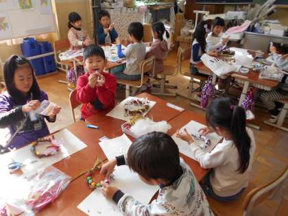 次は,「秋見つけ」で見つけた「木の実」などもつけて完成です。