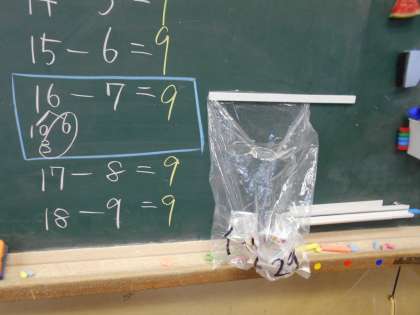 今日の給食では,お替りを欲しい人の数に「お玉」で分けていました。「これで大丈夫!」今度は,ふと黒板を見ると「型チーズ」の空容器を入れやすいように,マグネットで止めていました。大人が何にも言わなくても,みんなが過ごしやすいように,自分たちで考えています。