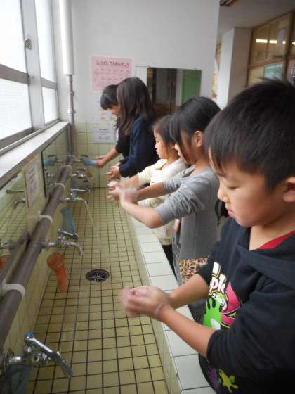 昼休みに2年生の希望者の子どもたちが手洗い選手権に挑戦しました!