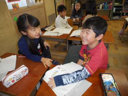 まずは自分でどんな工夫ができそうか考えた後,より良い工夫を考えるために二人組で話し合いをしました。