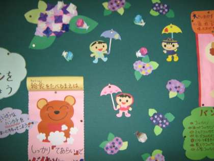 「こいのぼり」から「あじさいと子ども」に変わったのを,子どもたちは気がついてくれたでしょうか(^0^)