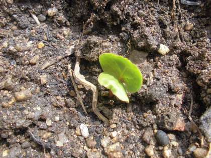 ホウセンカやオクラと同じように,子葉が出てきていますね。