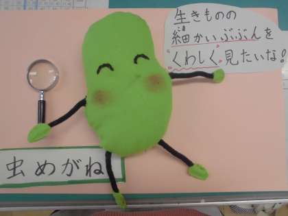 美豆まめくんといっしょに,虫めがねの使い方を学習しましょう。