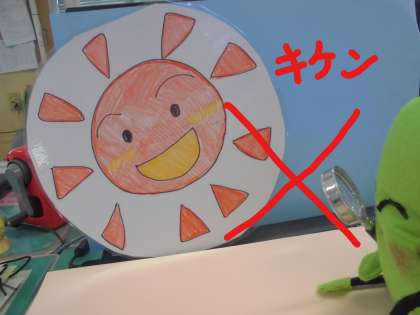 目をいためるので,ぜったいに虫めがねで太陽をみないでくださいね。