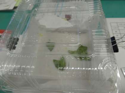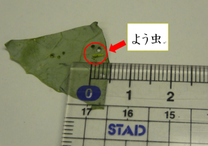 キャベツにうみつけられていた,たまごの中から,虫の子どもがでてきました。