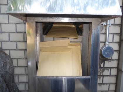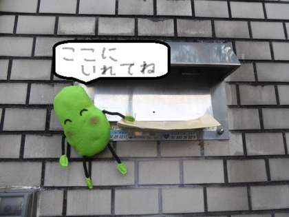 正門(せいもん)の右側(みぎがわ)にあるポストです。よかったら持(も)ってきて入(い)れておいてください。