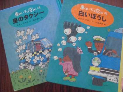 この「白いぼうし」には,「松井さん」というタクシーの運転手が登場しましたよね。実は,「松井さん」が登場するお話が他にもあるんです!「車のいろは空のいろ」シリーズです。なんさつか読むと,「松井さん」が出会うさまざまな出来事をいっしょに楽しむことができます。そして,松井さんのせいかくやみりょくがより分かって面白いですよ!