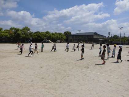 月曜日からの予定を渡した後,運動場で遊びました。