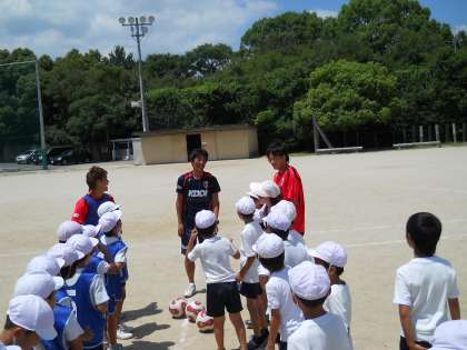 サッカーが得意な子もそうでない子も,選手たちと入り乱れての試合に子どもたちは大興奮!!最後は記念写真も一緒に撮っていただいて大満足のサッカー教室でした☆