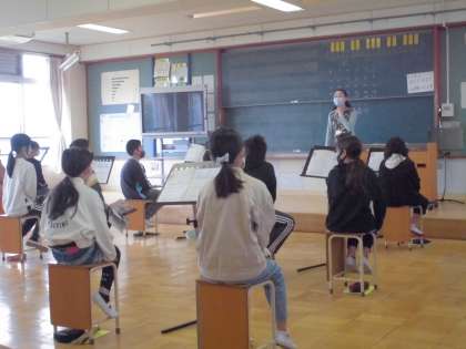 音楽の学習がスタートしました。高学年はスクールサポーターの先生に授業をしていただいています。