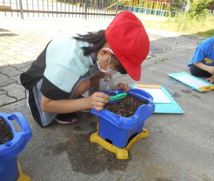 朝の水やりから帰ってくると「先生!芽が出てたよ!」とニコニコ笑顔の子どもたち!
