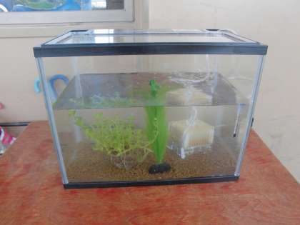 5年生の教室では,2クラスともにメダカとメダカの水槽などを用意していただき,それぞれの教室でメダカを飼うことにしました。