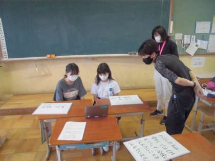 初めて顔を合わせる違う学校の児童会の代表者どうしが,緊張しながらも自身の学校について紹介することができました。