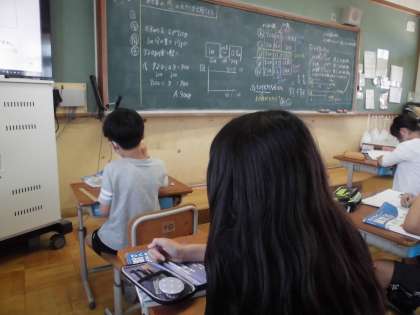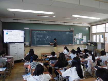 小数のわり算の学習が進んでいます。この日はわり算の商の大きさについて調べました。いくつかの式を並べてみると,わる数の大きさがわられる数と商の大きさに関係があることに気づくことができました。