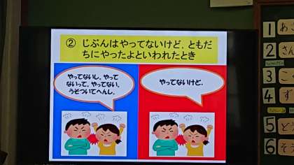 今日の道徳は「ともだちと なかよくなるために」どうすればよいかをみんなで考えました。お友達と話をするときどんな話し方をすればいいかな。いろんな場面について考えました。