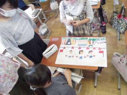 図画工作科で,校内の心に残る場所を描写した作品を鑑賞しあいました。友達の作品を見ることで,「3年生の時にこんなことあったなぁ」「自分もビオトープは好きな場所だなぁ」など,作品の良さを味わうとともに,これまでの思い出を振り返ることができました。