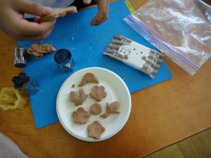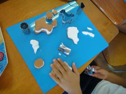 今日の図画工作科の授業で,色つきの紙粘土を使って,クッキーを作りました。粘土を一生懸命こねて,型を抜いたり,デコレーションをしたり,はさんだりなど,いろいろ工夫をして,すてきなクッキーを作っていました。一番のクッキーやさんはどれかな?