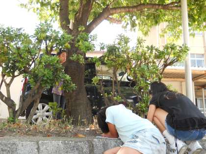 子どもたちは「あつい〜」「あつい〜」と言いながらも枝の細かい様子まで熱心に描いていました。